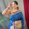 Pure soft silk Kanchipuram Saree with silver and gold zari weaved with 9-inch double peacock